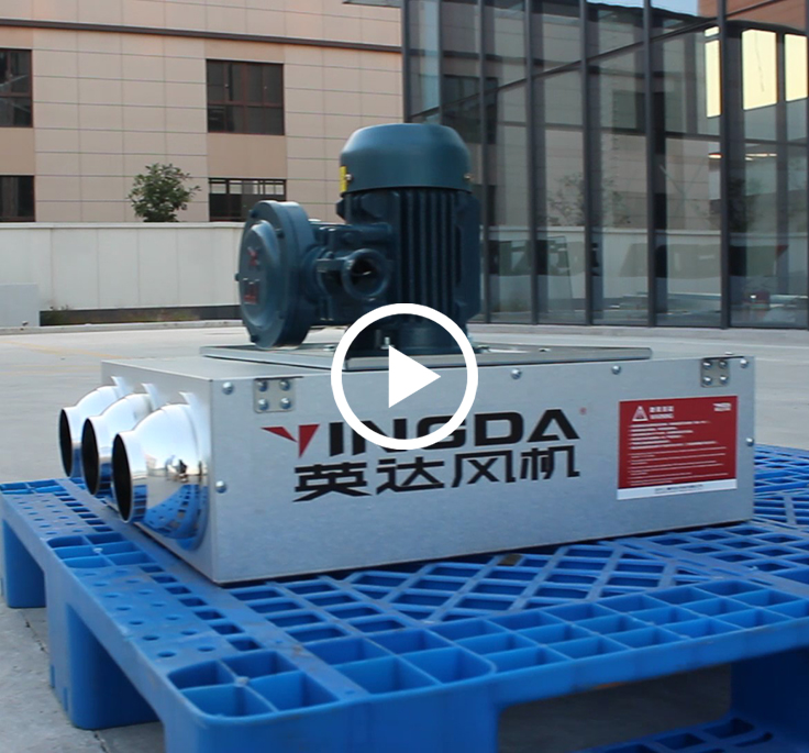1.1.YDF型誘導風機(jī)主要用於無風管條件下,將多台誘導風機(jī)按一定距離和方向依次排列,以少量(liàng)高速噴(pēn)流氣(qì)體帶(dài)動誘導周圍靜止(zhǐ)的空氣,達到高效經濟的通風換氣效果。也可單(dān)獨布置在通風(fēng)死角(jiǎo)區,通過誘導風機高速噴流達到稀釋廢氣作用(yòng)。