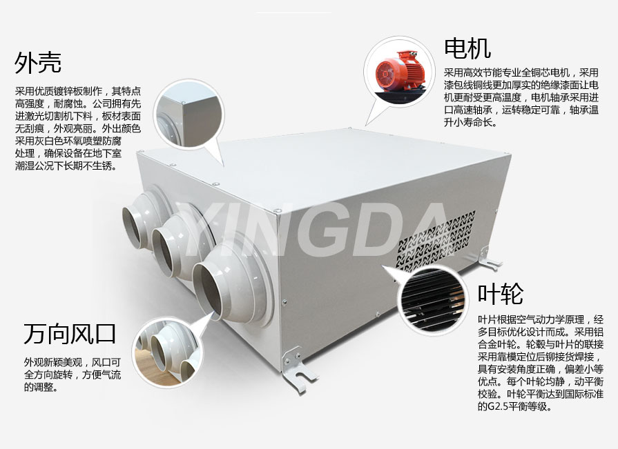 1.2.YDF型誘導風機是一種自帶噴嘴型誘導風機,可由多台誘(yòu)導風機組(zǔ)成一(yī)個誘導(dǎo)係統。